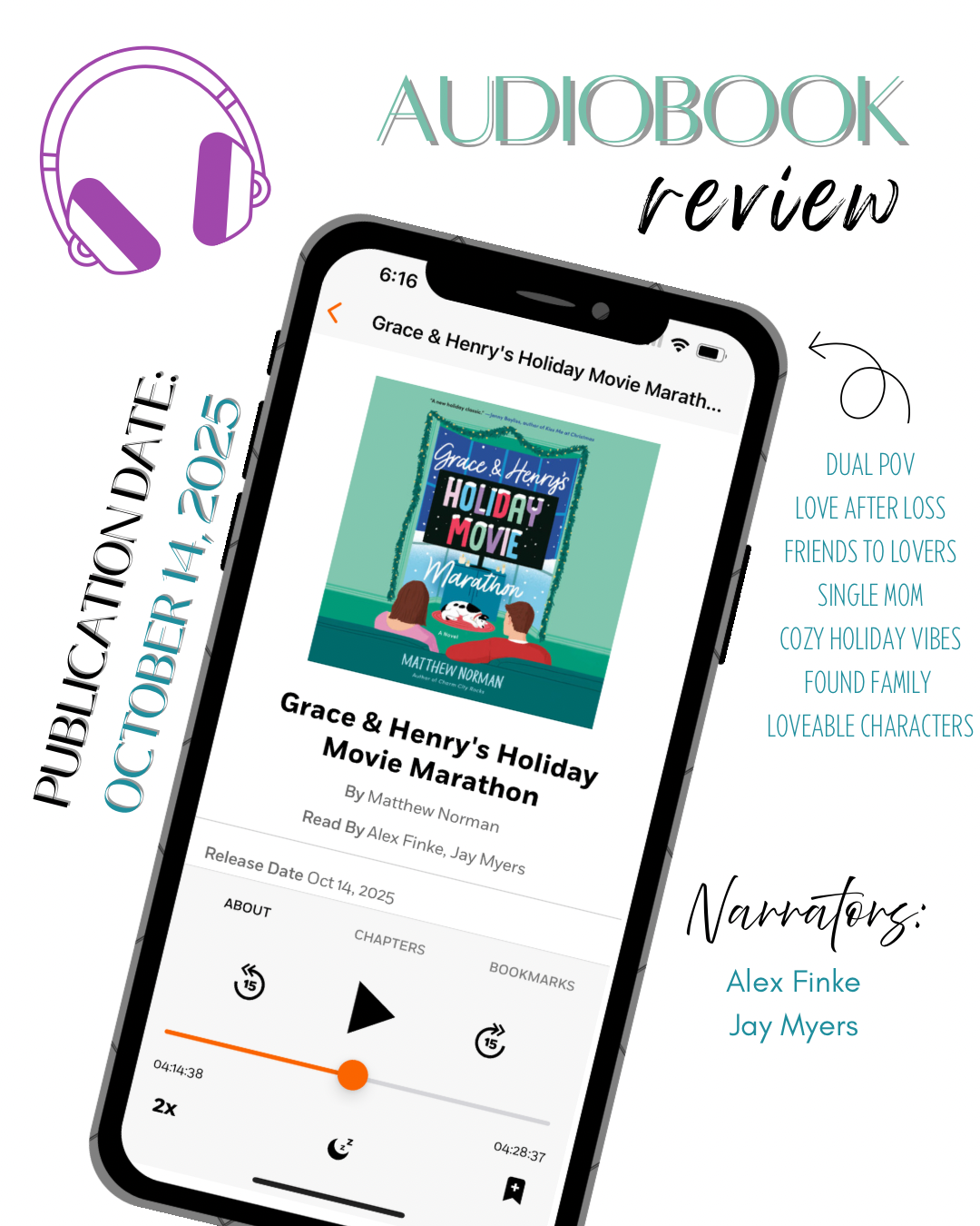 Alex Finke and Jay Myers are two narrators I always love and they were an absolute delight to listen to. Finke’s melodic voice and varied tone capture Grace’s passionate and patient personality; while Myers warm tones create a poignant presence by conveying Henry’s conflicted emotions and beautiful heart. You truly feel every moment right along with the characters.